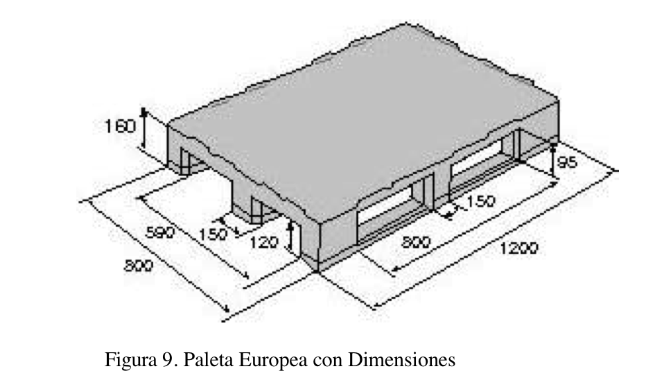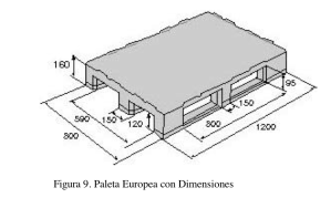 Sobre la consulta de la altura de las paletas parece que lo recomendado son 160 mm. Anexo una imagen de la Paleta Europea con dimensiones.